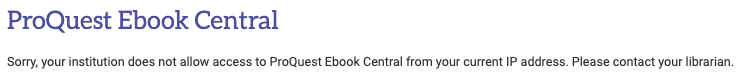 1. Sorry, your institution does not allow access to ProQuest Ebook Central from your current IP address. Please contact your librarian.