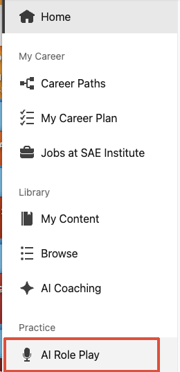 You'll find the AI role play on the left navigation bar under the heading 'Practice'.