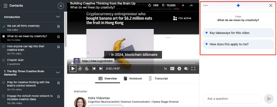Explore the LinkedIn Learning platform using AI in the following ways.